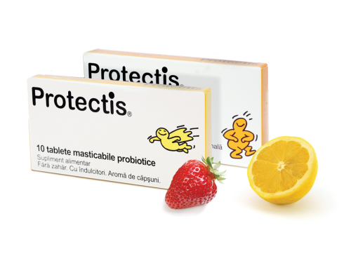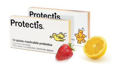 Unul dintre cele mai apreciate si mai bine documentate stiintific probiotice la nivel mondial este Protectis, produs de compania BioGaia AB Suedia – lider modial in productia de probiotice.