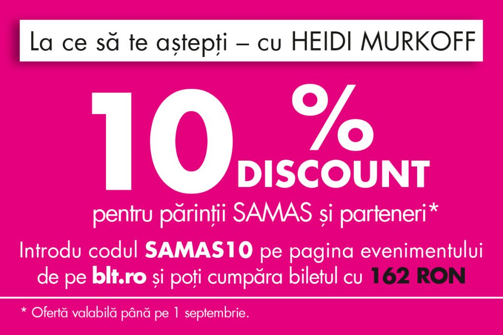 La ce să te aștepți – cu HEIDI MURKOFF este dedicat tuturor părinților și viitorilor părinți. Autoarea celei mai vândute cărți despre sarcină din lume și Dr. MIHAI CRAIU, medic primar pediatru, vor răspunde în direct la întrebările participanților despre perioada celor 9 luni, naștere, alăptare și îngrijirea copilului în primii ani de viață.