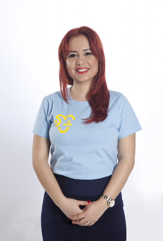 O femeie tânără și zâmbitoare, în rochie, pe tocuri. O antreprenoare din noul val. Valul dezinvolt. Prima impresie este că ai în fața ta o doză de energie. Dacă nu ești atent, te cucerește instant.