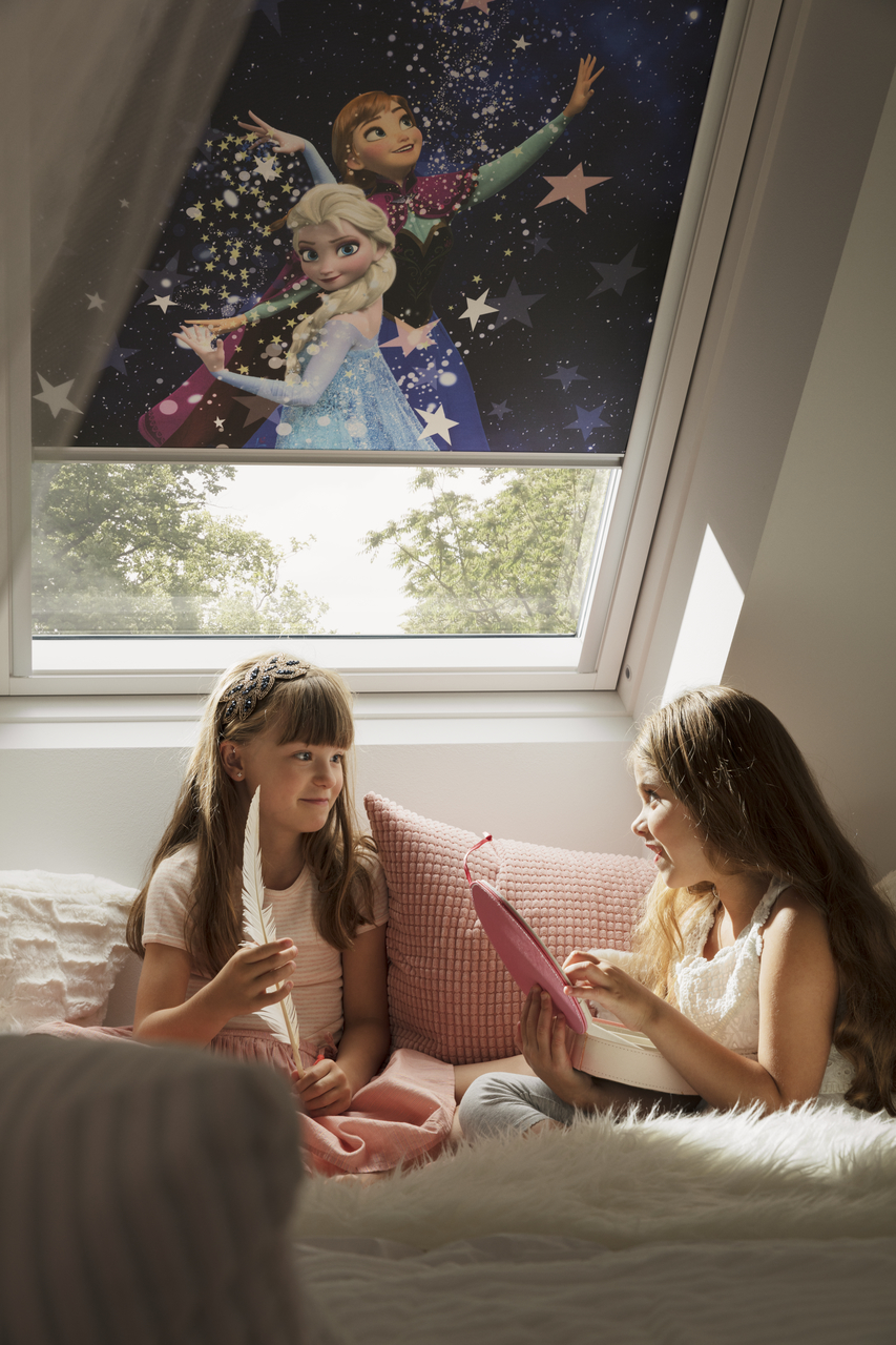 Cea mai ușoară soluție de a ține departe razele de lumină, ce ar putea pătrunde în dormitor în momentele nepotrivite, este dată de rulourile de ferestre care au rolul de a împiedica lumina să pătrundă în camere. VELUX aduce acceastă soluție la un nivel ridicat de confort și calitate, împreună cu Disney, prin intermediul colecției de rulouri opace Disney & VELUX Goodnight Collection. Această colecție oferă soluția perfectă pentru părinții care vor să asigure copiilor cele mai bune condiții de odihnă posibile printr-un un efect de întunecare complet și o atmosferă perfectă pentru un somn liniștit.