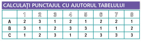 Calculează punctajul cu ajutorul tabelului.